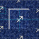 A chrome like Sagittarius zodiac symbol on a navy blue digital camouflage design texture print background. A modern urban racy design for a great custom birthday gift idea.