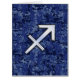 A silver chrome like Sagittarius zodiac symbol on a vibrant navy blue digital camouflage design texture print background. A modern urban design for a great custom birthday gift idea.