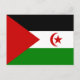 The Sahrawi Arab Democratic Republic flag has three horizontal bands, in black, white and green. To the left is a red triangle, and in the centre is a red crescent and star. It was adopted in 1972, and has a 1:2 ratio.