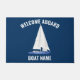 Welcome guests in nautical style with this Sail Boat Name Mat, featuring a watercolor blue and white sailboat and the words Welcome Aboard. Personalize it with your own boat name for a truly unique touch that captures the essence of life on the water. Made to withstand the elements while adding a charming coastal flair to your boat or beach house entryway, this mat is a perfect gift for sailing enthusiasts. Make every entrance feel like you're setting sail on a new adventure! 🌊⛵