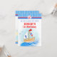 Nautical theme kids 1st birthday invitation. Cute sail boat whimsical art on front and lighthouse watercolor art on the reverse in blue, red and white. Personalize with your own party details. Original watercolor whimsical paintings and design by Sarah Trett.