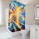 “Sail Into Sunset: Ocean’s Whisper” captures the serene journey of a lone sailboat as it travels into the embrace of the setting sun. This shower curtain brings to life the gentle ripples that grow into waves, reflecting the sun’s fiery palette. The vibrant hues of the sunset blend seamlessly with the tranquil ocean, creating a breathtaking visual effect. Transform your bathroom into a serene aquatic sanctuary with this stunning design, inviting a sense of adventure and tranquillity into your space.