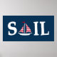 Sail text design illustration with sailing boat decoration on dark blue background. It is possible to change the background color and to add different one to the design with your choice.