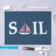Sail text design illustration with sailing boat decoration on dark blue background. It is possible to change the background colour and to add different one to the design with your choice.