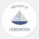 Use this cute little sticker to identify your son's books, games, school supplies and more. Navy blue sailboat graphic by Shelley Winters Design. See our bookplate collection below for hundreds of sticker variations. .