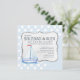 An adorable, nautical-theme, baby shower invitation with a light blue background and white polka dots. A decorative, rope panel holds the wording for your party.