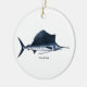 Designed for billfish enthusiasts, sportfishermen, and nautical theme collectors, this sailfish ornament features vintage style artwork. The sailfish is one of the world's most iconic saltwater fish. The species is named for its sail-shaped dorsal fin, which unfurls during feeding frenzies.