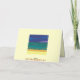 This holiday greeting card. is a colourful painting of the sea and sand in greens blues ,sand pink.and purple. Text on front "Sailing Away"