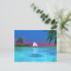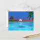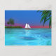 A tropical water scene with a sailboat. You can move or delete content on the back of the postcard by clicking the "customize it" button.