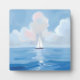 Sailing in Blue | Beach Coastal Sailboat Ocean Painting Plaque