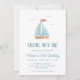 Celebrate your little one's big milestone with a nautical themed first birthday invitation that features a cute little sailboat. Matching party decor in our shop