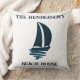Sailing Navy Blue Yacht Family Name Beach House Throw Pillow