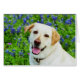Blank inside card with photograph of yellow labrador retriever dog in the Texas bluebonnets