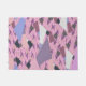 An abstract art design in pastel colours of boat sails against a sunset sky.