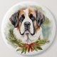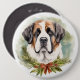 Saint Bernard Christmas Wreath Festive Pup 6 Inch Round Button
