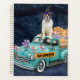A cute Saint Bernard Dog sitting on Halloween truck with skulls is a perfect Halloween gift idea for someone who love dogs.