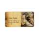 Elegant and classic address label design on aged old brown parchment..Painting by Carlo Crivelli Italian Renaissance painter of Late Gothic decorative sensibility..Detail from the San Martino Polyptych . Photography and digital treatment for better printing by Bulgan Lumini .