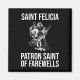 This funny sarcastic design is a reference to the Bye, Felicia meme. Great joke gift for an introvert who values personal space. Features a graphic of St. Felicia waving goodbye. Felicia is always going somewhere. Show your devotion to the patron saint of good-bye with this humorous satire accessory. Perfect for antisocial people!
