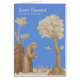 Saint François prêchant aux oiseaux, peint par l'artiste allemand Johann Anton Ramboux en 1808. Un tableau accrocheur, avec la prédication de Saint François, son frère moine, et les oiseaux écoutants montrés contre un arrière - plan bleu vif. La peinture a été numériquement restaurée, en partie pour rehausser cette caractéristique très décorative. À l'intérieur de la carte se trouve un extrait de la légende sur Saint François et les oiseaux : Un jour, alors que François voyageait avec quelques compagnons, ils se sont produits à un endroit de la route où les oiseaux remplissaient les arbres de chaque côté. François a dit à ses compagnons de "m'attendre pendant que je vais prêcher à mes soeurs les oiseaux." Les oiseaux l'entourèrent, intrigués par la puissance de sa voix, et aucun d'entre eux ne s'enfuit. Le modèle de la peinture du Ramboux est la fresque numéro 15 du cycle Saint François dans la Haute Eglise de San Francesco à Assisi (intitulée Sermon aux oiseaux). Le cycle de fresque est daté entre 1297-1300 et traditionnellement attribué à Giotto di Bondone.