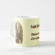 This mug depicts St. Jude Thaddeus. He is the Catholic patron saint of "lost causes" and "cases despaired of". When all hope is gone, he is the one to call upon, and his help often comes at the last moment. His image is on the left and right sides. The text can be customized to suit your needs.