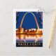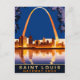 Saint Louis poster. Gateway Arch over the city. Water reflections. Travel postcard in bright colours and blue background.