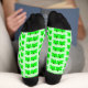 This awesome pair of patterned crew socks features a cartoon of a cheerful butterfly with a dark green body and fluorescent green wings. On the wings is darker green text that says “Happy St Pats”. This friendly little butterfly is designed to appeal to all ages and is ready and waiting to wish someone a happy St Patrick’s Day.