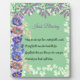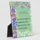 Flower collage decor 'Home Accent Irish Blessing Plaque' for Saint Patrick's Day. The illustration has a floral collage of lilac and pansy flowers amidst greenery on a green shamrock background. The  TEXT is easily customizable with your choice of Irish/Any Blessing. The words and calligraphy can be changed.