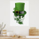 Saint Patricks Day Leprechaun Hat and Skull and Lucky Four leaf Clover Shamrock Poster
