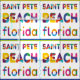 A seamless colourful text art pattern Saint Pete Beach, Florida. Lines of blue waves and golden yellow sand. The American beaches series of designs. You can use this awesome and positive piece of textile fabric for any craft or apparel project, and more. Just be creative, make something elegant, and be happy!