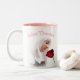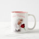 This beautiful design features a Saint Therese painting with a rose. Saint Therese text is pink outline. The inside of the mug is a soft pastel pink.