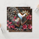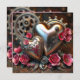 Modèle de photo personnalisé unique de carte de Saint-Valentin Steampunk. Jolies roses roses, cœurs métalliques et engrenages en cuivre, le dos comporte trois espaces pour des photos en forme de cœur. Vous pouvez également modifier le texte dans la zone de personnalisation.