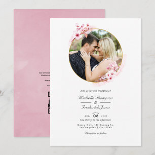 Pink Spring Cherry Blossom Wedding Photo Invitation