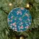 Sakura Cherry Blossom Print on Blue Ceramic Ornament