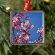 Sakura Cherry Blossoms Touching Blue Metal Ornament