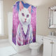 Introducing our delightful Shower Curtain featuring whimsical fantasy art: a jazzy kitty adorned in a stylish cardigan, gallivanting among blooming cherry trees in full springtime splendour.