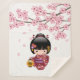 Sakura Kokeshi Doll - Cute Japanese Geisha Girl Sherpa Blanket