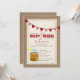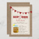 Une invitation à la gorgée et à la contemplation avec du bunting rouge en haut et une illustration d'un pot de mason de thé glacé sucré au citron en bas à gauche. Le Arrière - plan à l'avant et à l'arrière est inspiré des burlap. Le design de l'avant est inspiré de la dentelle. Personnalisez le texte avec vos informations.