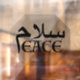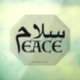 The word "Peace" in both English and Persian script ("Salam"), where the last Persian letter "m" is also the first English letter "p" - symbolizing the bringing together of East and West through common ground