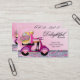 Cupcake business card with super cute scooter woman, sugary sweet glitter icing and pretty heart candy.