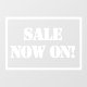 This "Sale Now On" Window Cling Graphic is bold enough to announce your business is having a sale. Shop sale notice. White on clear background.