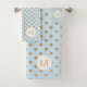 Ensemble moderne bleu-clair et de faux de feuille d'or de point de monogramme de bain de serviette.