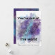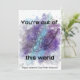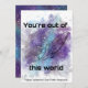 La carte de la Saint-Valentin sur le thème de l'espace, avec un vaisseau spatial fusée, une planète, une nuit étoilée couleur bleu/violet, et un jeu de mots "vous êtes hors de ce monde."