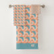Sophisticated modern knot pattern in trendy salmon and teal. Add your initials to make is special! Coordinate with a shower curtain and bathmat!