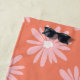 Salmon colour beach towel with bohemian floral daisy pattern and handwritten name which you can easily customize. Bring colour and good vibes to your summer holiday with this retro beach towel.