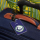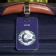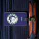 With a flip of a fin a glistening salmon dives into the safety of the flowing kelp beds to feed. In this stylized illustration, shells, kelp, plankton and fish net represent the elements that are ever present during the life cycle of Pacific Salmon. The Fully customizable luggage tag features beautiful ocean colours in blue, teal, green and grey. For nature lovers, fishers or anyone who loves an ocean theme.