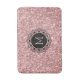 Elegant simple salmon pink glitter texture print. Black ornate geometric circle with custom monogram