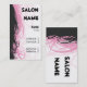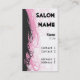 Pink and black wisps of hair accompany your business card information. If you would like another colour scheme, please contact me.