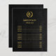 Luxury beauty salon service menu price promotional flyer for a barber hairstylist shop or men salon with a classy faux gold typography script on a solid black elegant leather look background. ++++++++++++++ Please note that the leather texture look is PRINTED. +++++++++++++ You can replace the logo with your own. +++++++++++ If you need help in customizing the design, please message me.