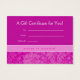 Salon gift card / certificate (Business Card) for nail or hair salon or Spa with pretty floral / flower pattern in elegant and trendy pink damask and stripes with oval company name bubble.