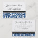 Customizable salon, spa or hairdresser gift certificate in elegant and pretty dark navy blue, black and white classic floral damask pattern. Customize with your own text for a personalized gift certificate for your business. Contact us to request a custom colour or matching products for your company.
